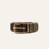 – Engraved loops in aged silver- Adjustable length- Metal buckle- Cowhide certified by Leather Working Group- Dimensions: length 85/90 cm x width 3.5 cm- Made in Italy