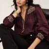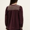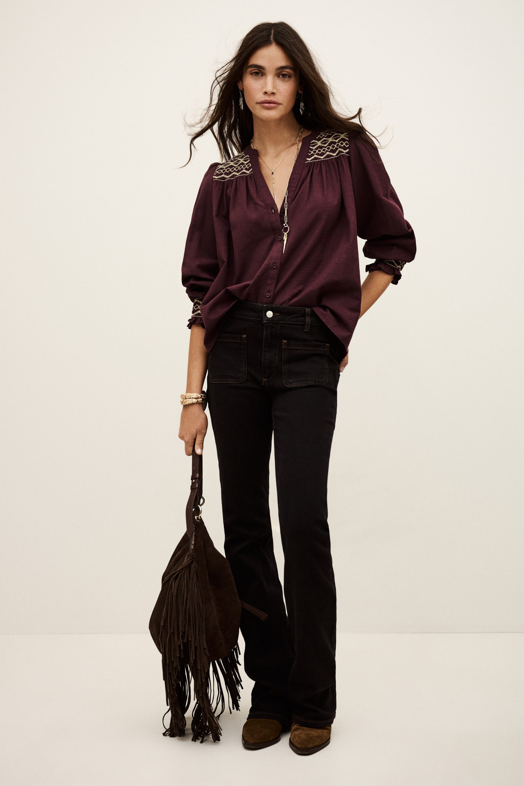 – Slim-fitting- Long, slightly puffy sleeves with smocked cuffs- Smocked front and back with bohemian patternsThis product contains linen, a natural fiber with a low environmental impact.The cotton fibers in this model come from organic farming.
