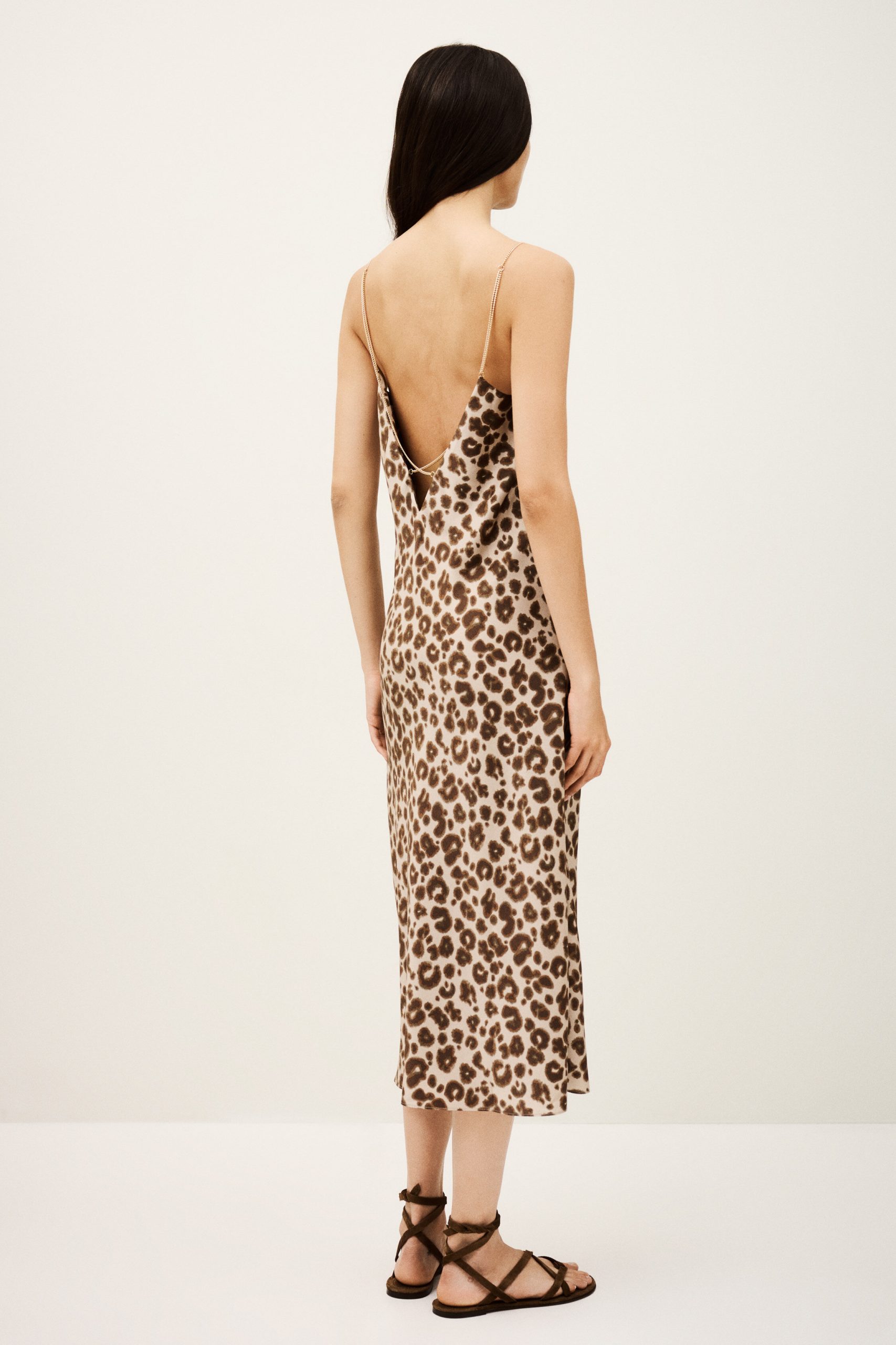 – Flowing fabric- Snug-fitting- Chain straps crossed in the back- Rear V-neckline- Satiny effectThis model contains recycled synthetic fibers.