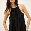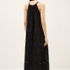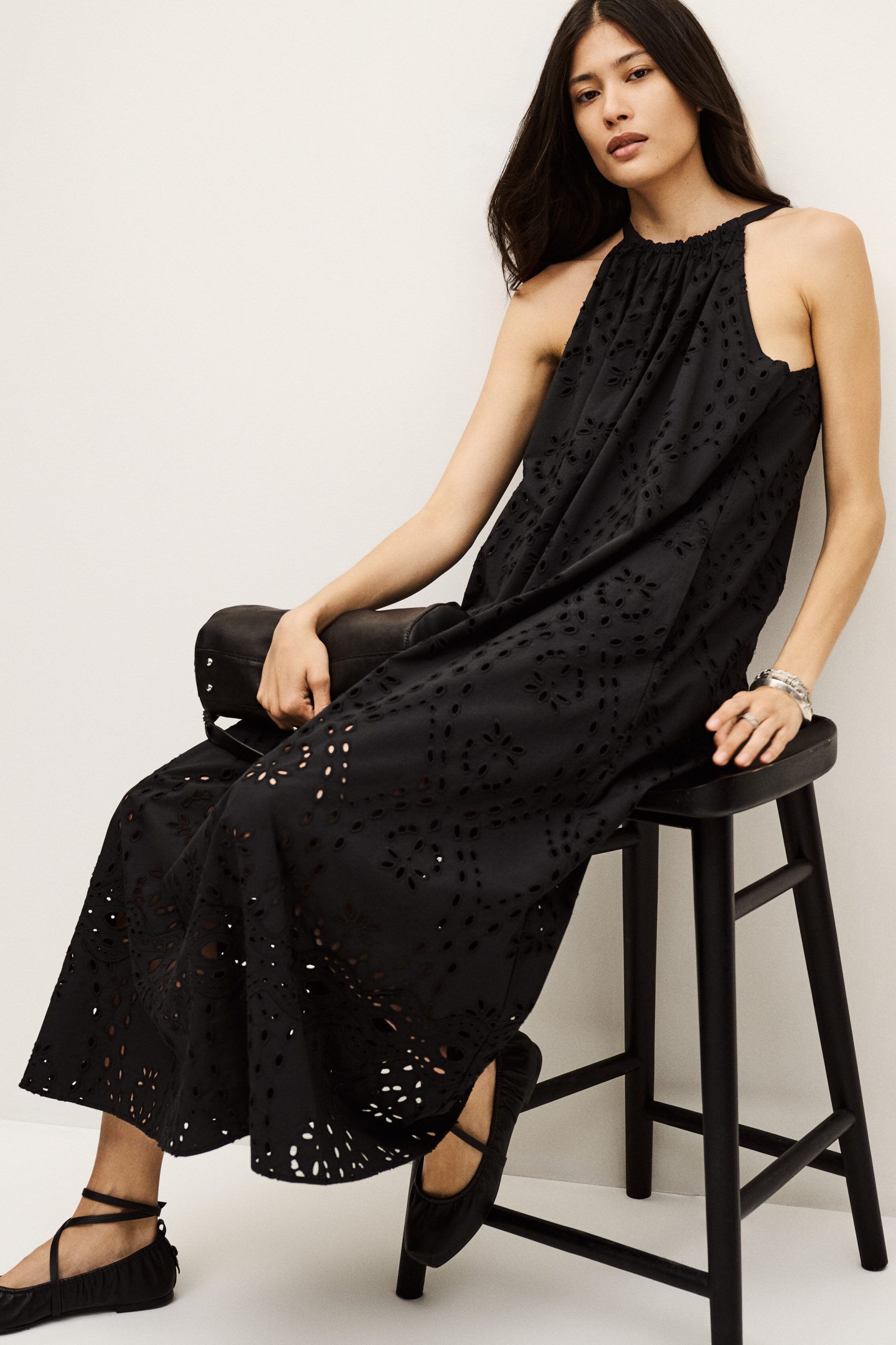 – Long silhouette- Flared cut- Sleeveless- Gathers on the neckline- Lined garment- Openwork English embroideryThe cotton fibers in this model come from organic farming.