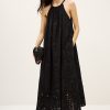 – Long silhouette- Flared cut- Sleeveless- Gathers on the neckline- Lined garment- Openwork English embroideryThe cotton fibers in this model come from organic farming.