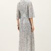 – Maxi length- Flared- Plunging V-neckline- Short and loose-fitting kimono style sleeves- Fitted waist- Gathered front and backThis model contains recycled synthetic fibers.