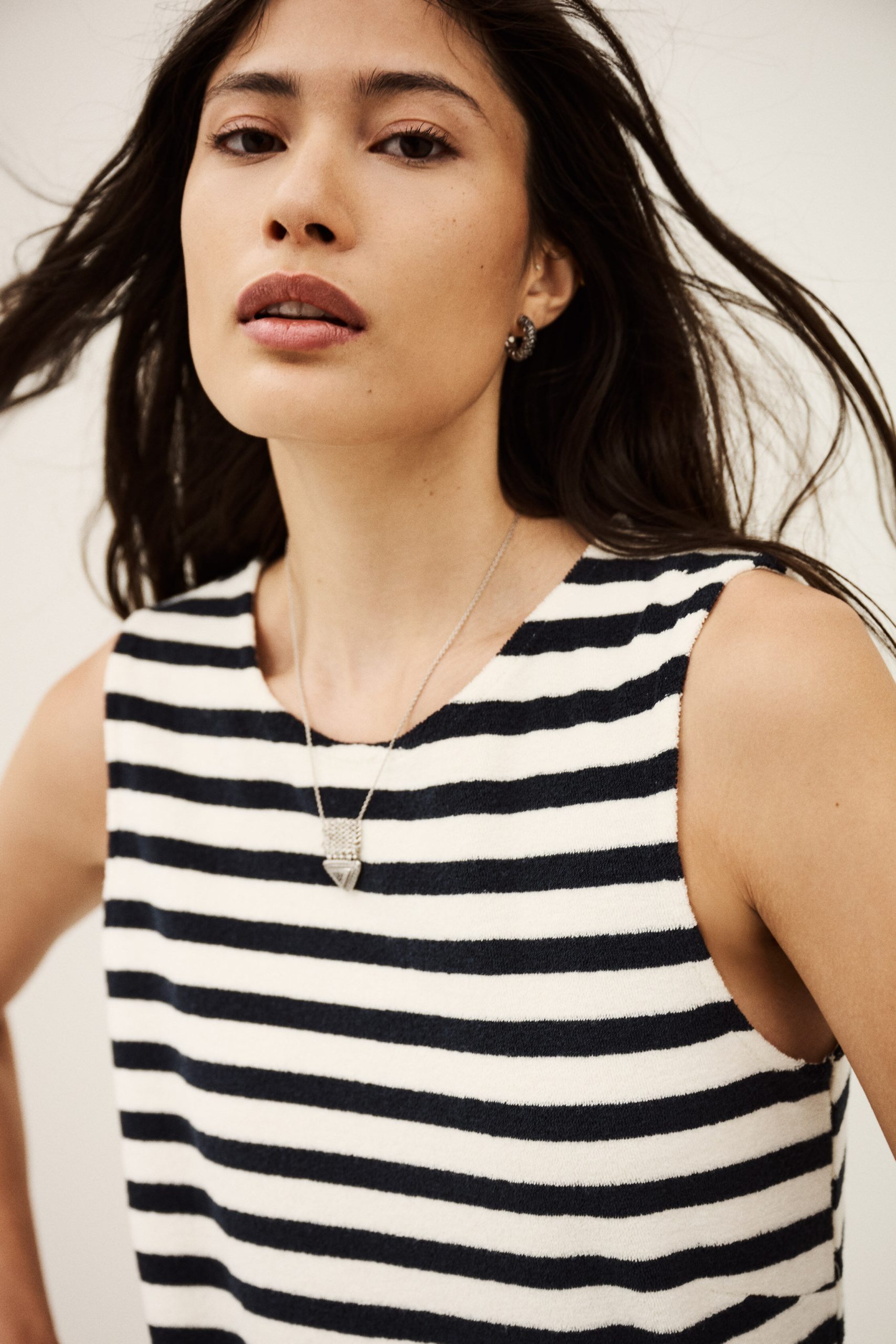 – Mini length- Straight cut- Tunic style- Sleeveless- Round necklineThe cotton fibers in this model come from organic farming.