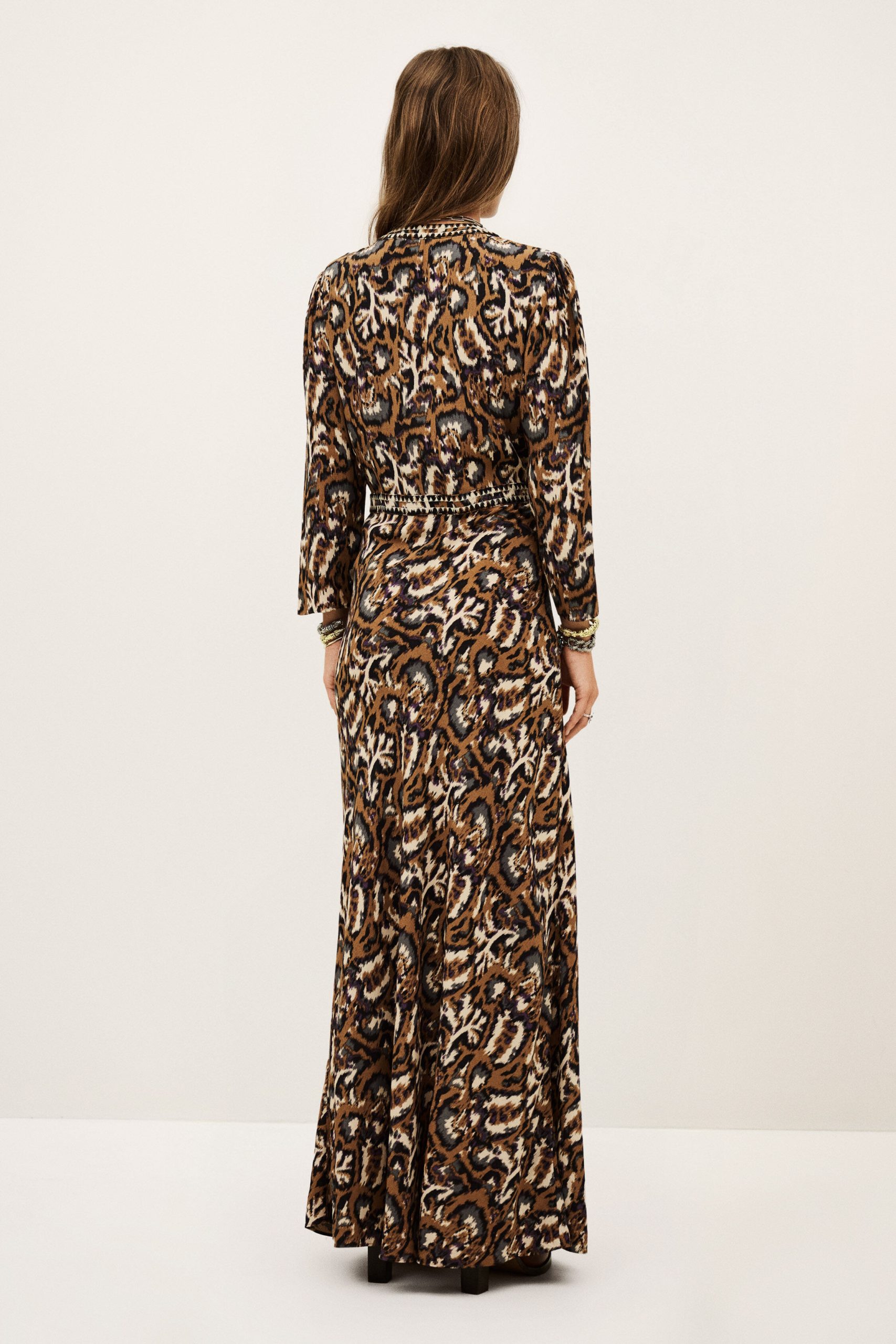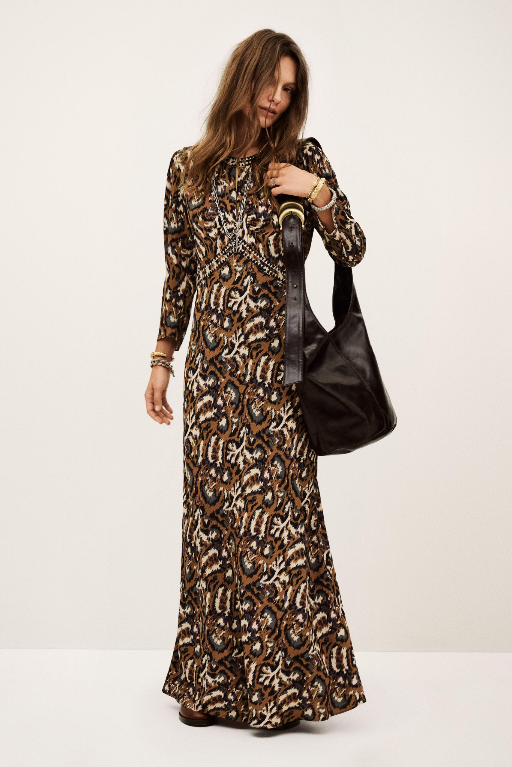– Asymmetrical midaxi cut- Keyhole neckline with hook fastening- Three-quarter sleeves- Embroidered waistband with ethnic motif- PatternedThis model contains LENZING™ ECOVERO™ viscose, a fiber made from wood pulp from sustainably managed forests. LENZING™ and ECOVERO™ are trademarks of Lenzing AG.The viscose in this model is made from wood pulp from sustainably managed forests.