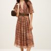 – See-through look with lining- Low-cut wrap-over neckline- Elbow-length butterfly sleeves- Belted waist- Gathered skirtThe viscose in this model is made from wood pulp from sustainably managed forests.