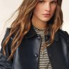 – Cropped length- 3/4 sleeves- Leather-covered snap buttons- Peter Pan collar- Patch pocket- Gathered details This item is made from leather obtained from a tannery certified by the protocol of the Leather Working Group.