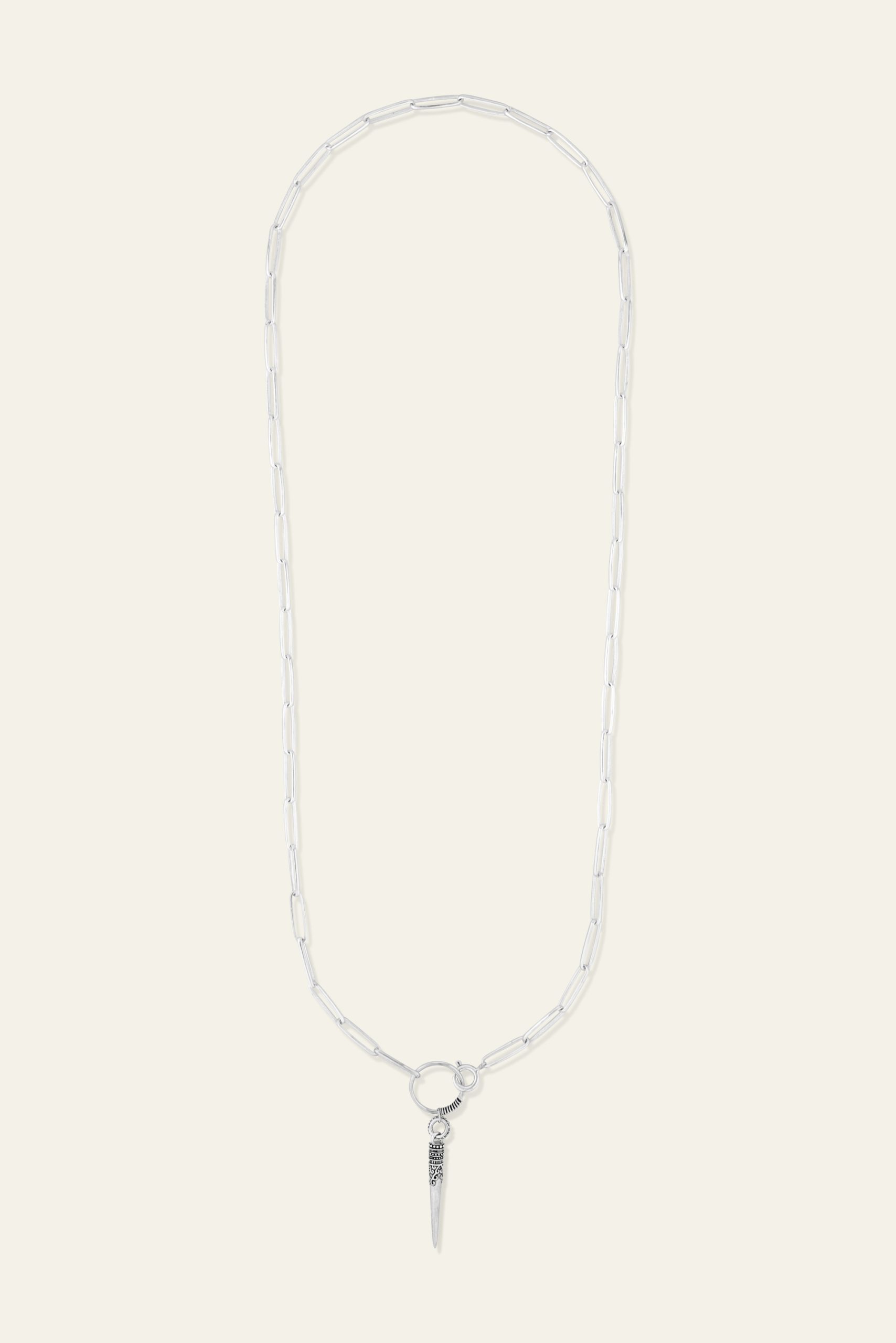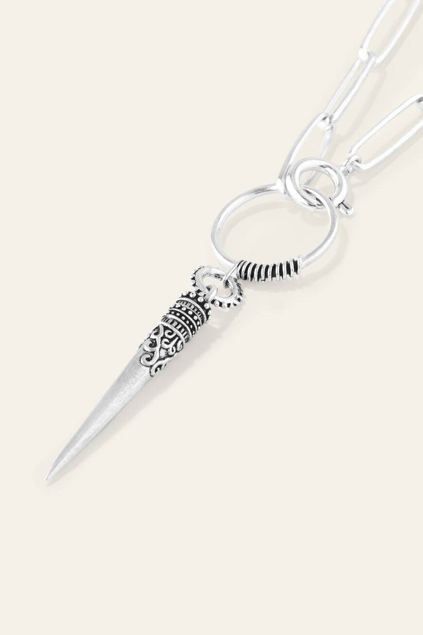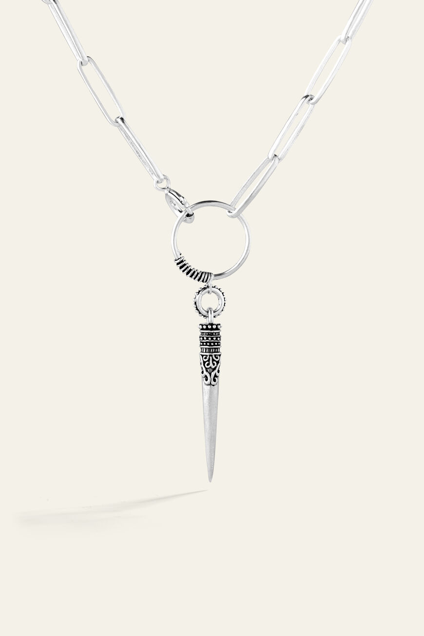 Joyfully free-spirited, ba&sh jewelry celebrates women, style and freedom with a finely nuancedbohemian jewelry collection. You’ll fall for this ba&sh NAOMIE necklace with ancient inspirations. A perfect blend of modern and exotic. This recycled solid silver necklace pairs a long minimalist large-hoop chain with apointy pendant with laser-etching. A necklace that can be worn long or looped twice around the neck. – Recycled sterling silver necklace and pendant- Gold plated version: recycled solid silver necklace with gold plating- Size: chain length approx. 80 cm / pendant length 7.7cm- Lead-free, nickel-free- Delivered in a beautiful pocket with a QR Code so you can discover the ba&sh jewelery story. These pieces of jewelry are delicate objects items. Follow these guidelines to preserve their original beauty for as long as possible.