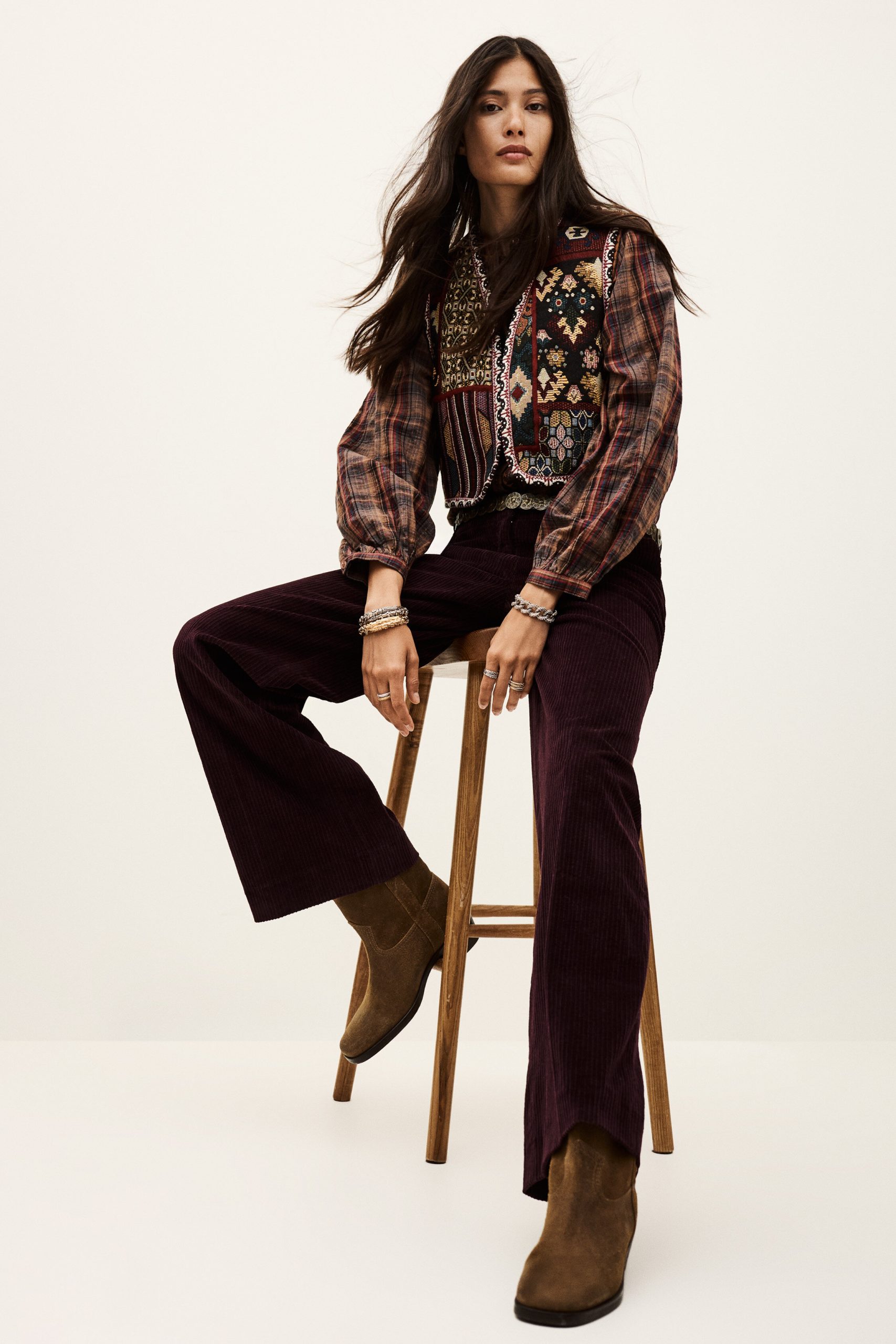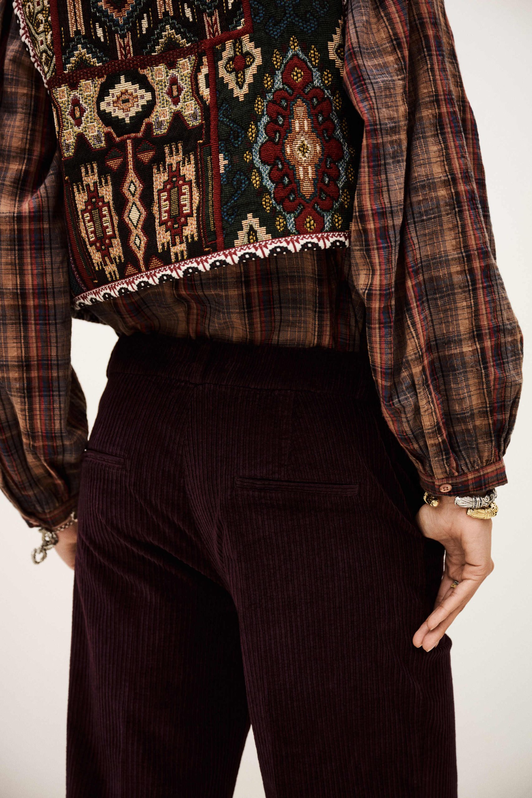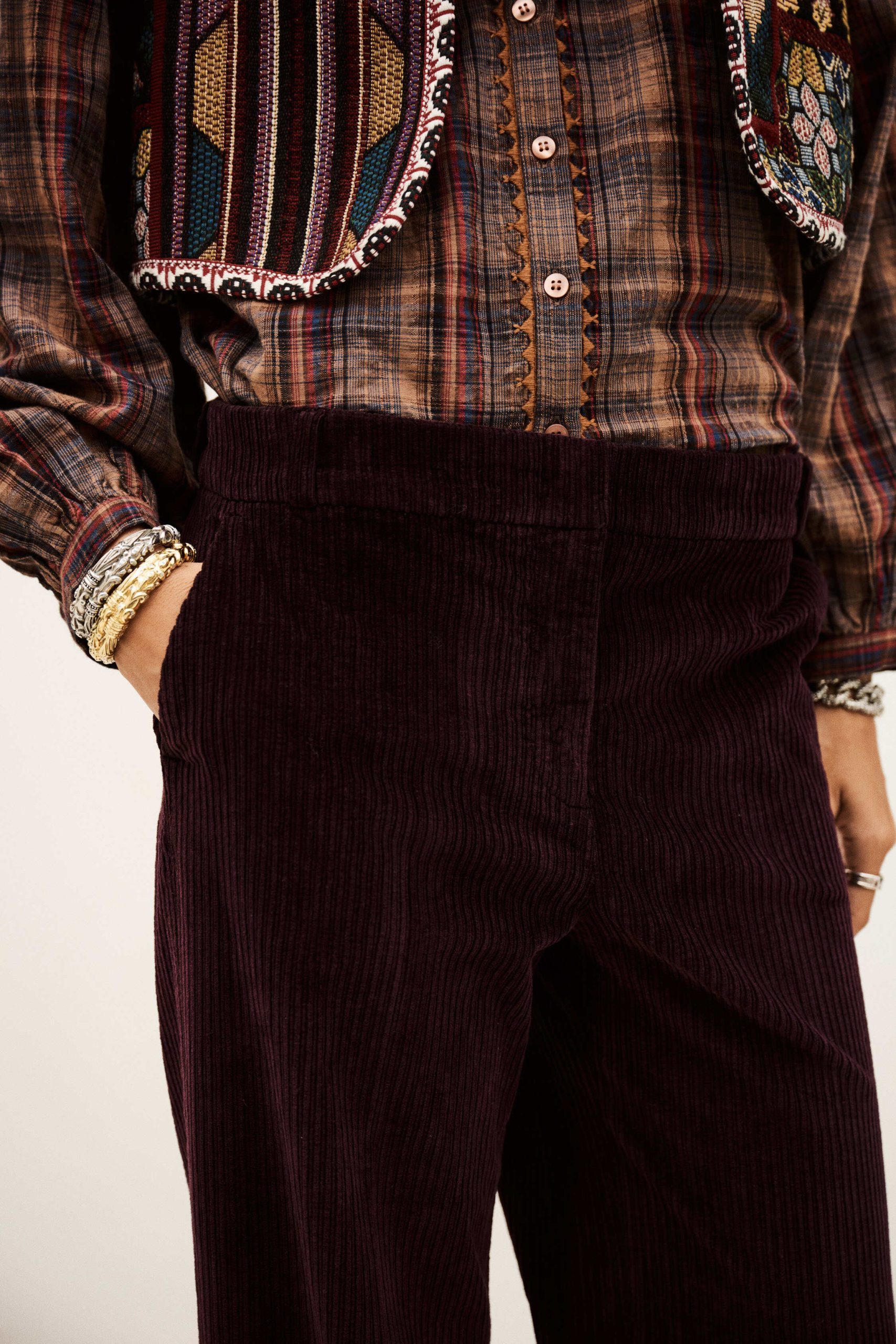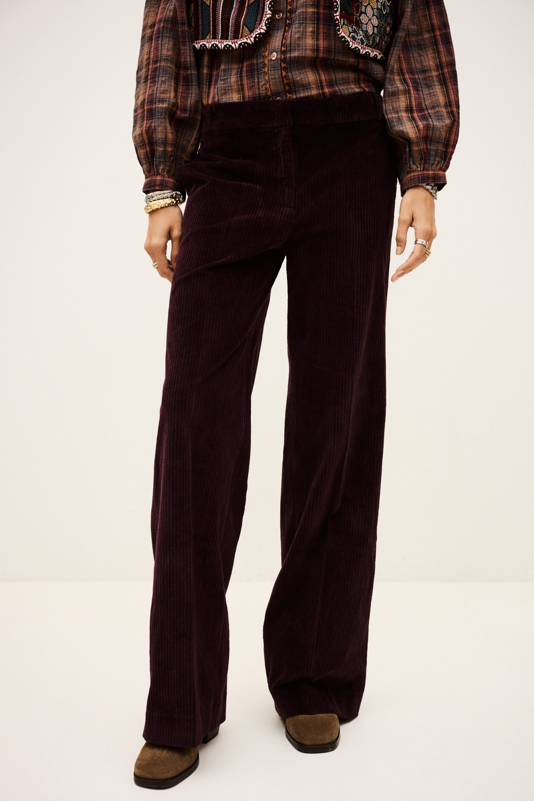 – Suit pant style- Chic urban look- Slant pocket in front- Pleated legs – Patch pockets- Piping in back- CorduroyThis model contains TENCEL™ MODAL fibers made from wood pulp from sustainably managed forests. TENCEL™ is a trademark of Lenzing AG.