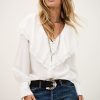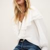 – Loose-fitting- Frilly collar- Long sleeves- V-neckline- Buttoned front- Shoulder slitsThis model contains LENZING™ ECOVERO™ viscose, a fiber made from wood pulp from sustainably managed forests. LENZING™ and ECOVERO™ are trademarks of Lenzing AG.