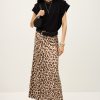 – Godet style- Leopard print- Triangular seam on the waist- Side zipper closureThis model contains recycled synthetic fibers.