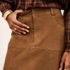 – High, fitted waist- Slightly flared with a godet style base- 5-pocket jeans style design- Double topstitches- Raw edges- Suede materialThis product was made from leather from a tannery certified according to the Leather Working Group protocol.