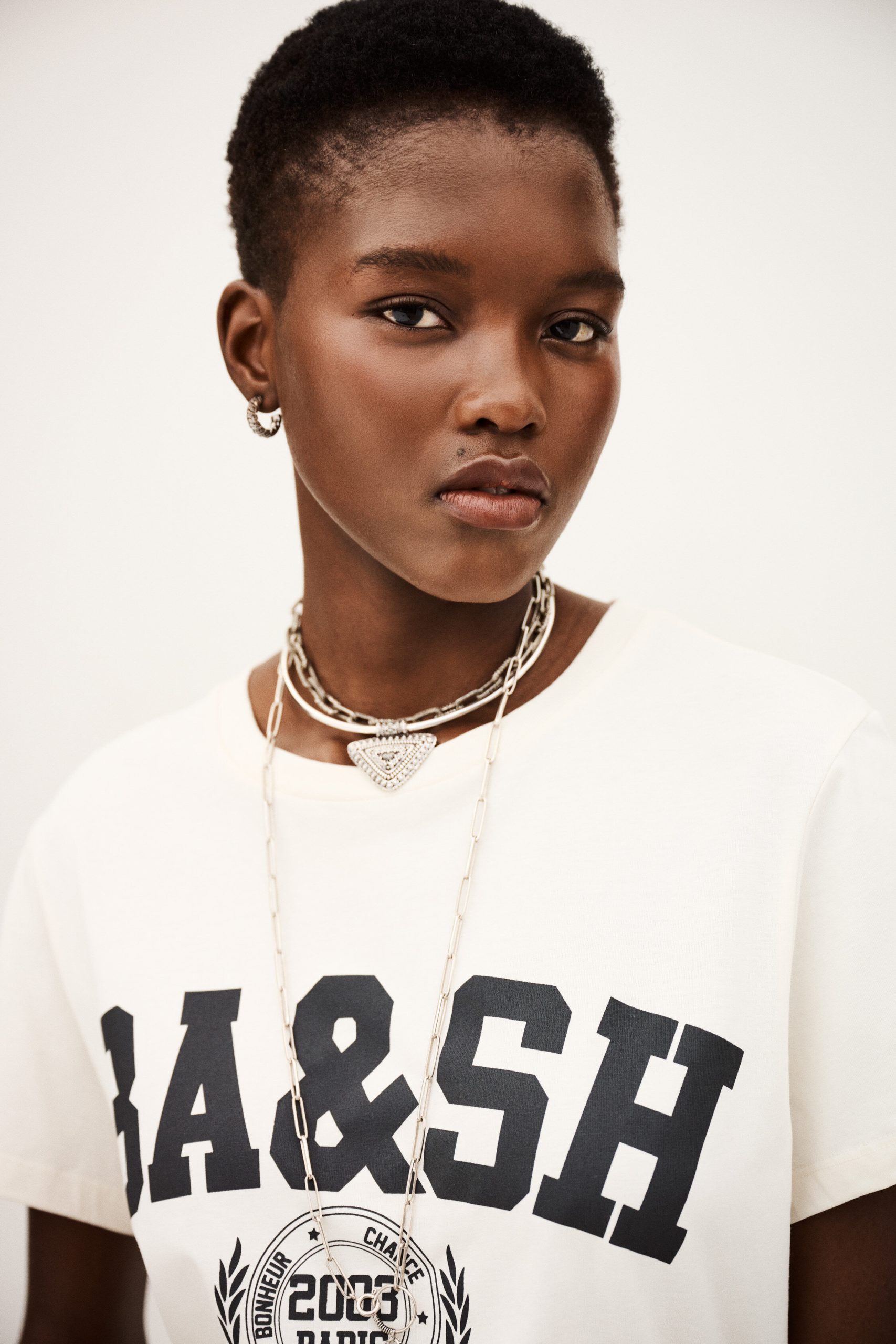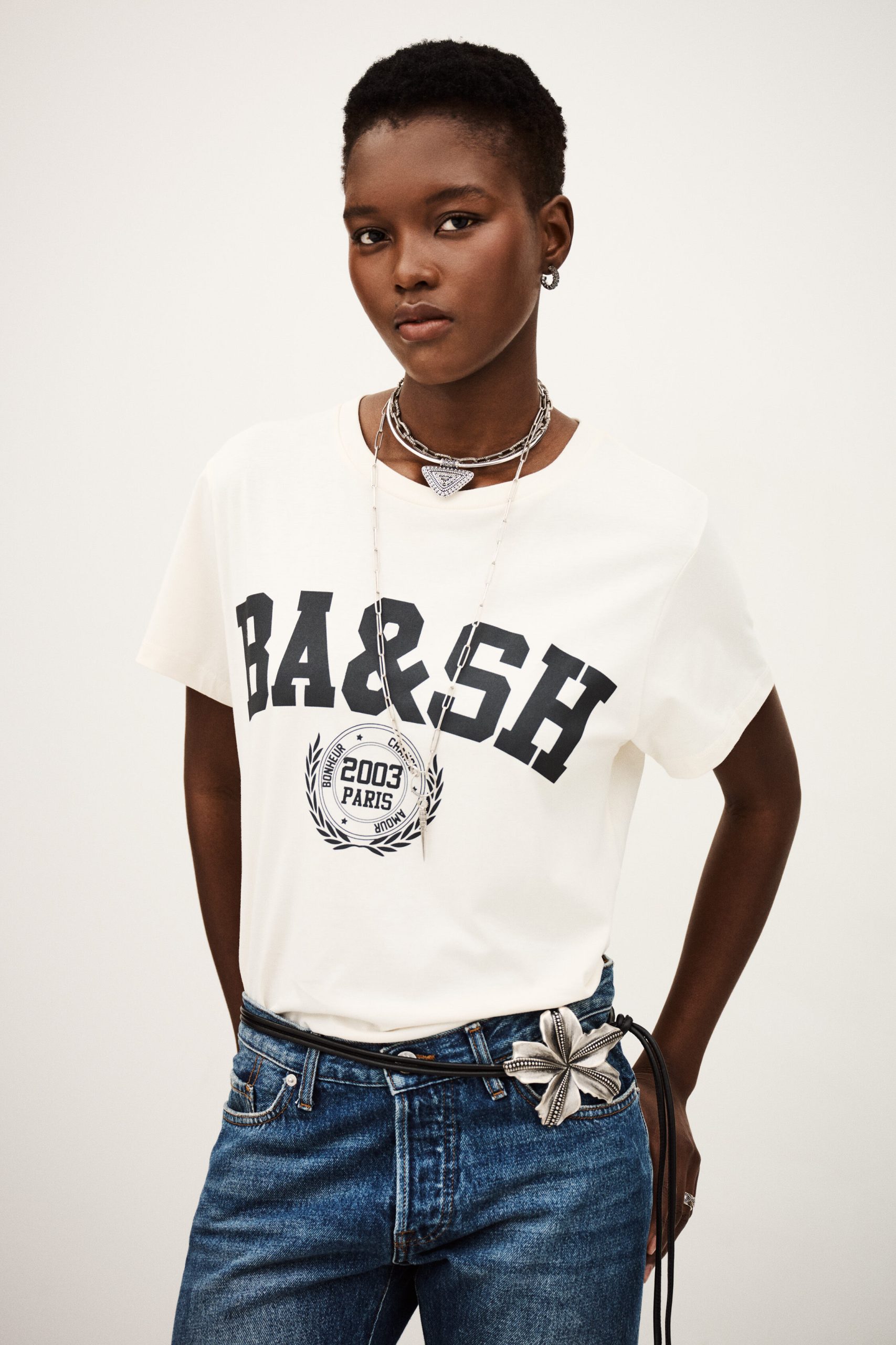 “- Boxy T-shirt- Slightly cropped- Short sleeves- Casual college style- Varsity team or university style printed logo in front- Super comfy round neck- A must-have, easy-to-wear T-shirt for every lookThis item is made with organic cotton.