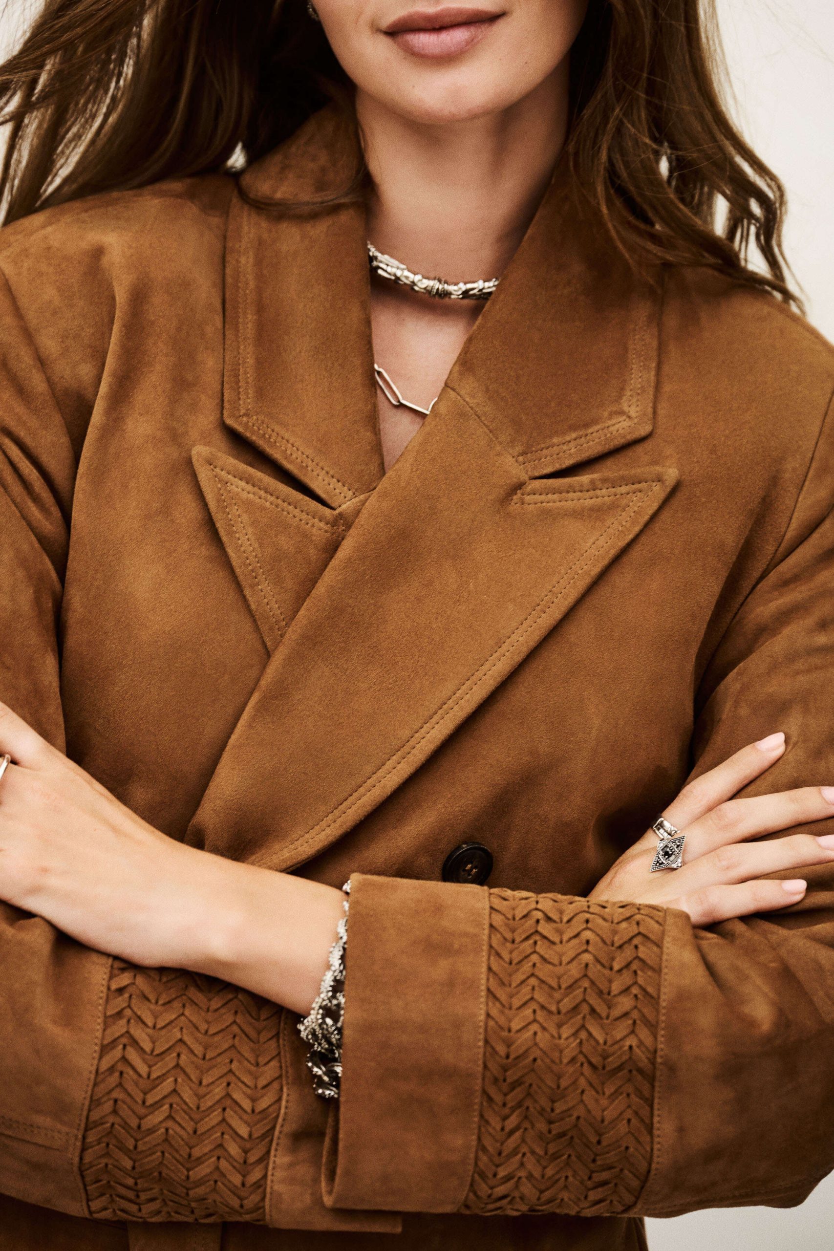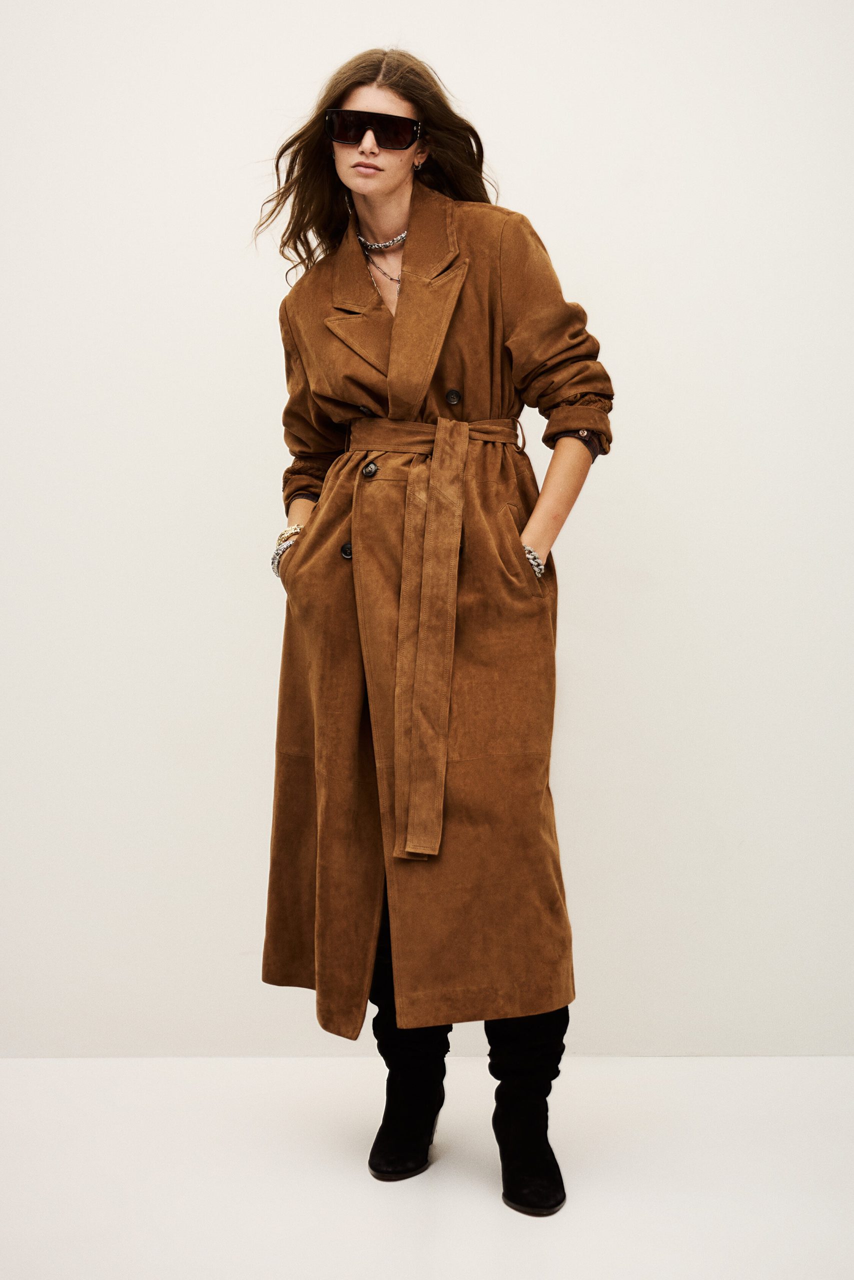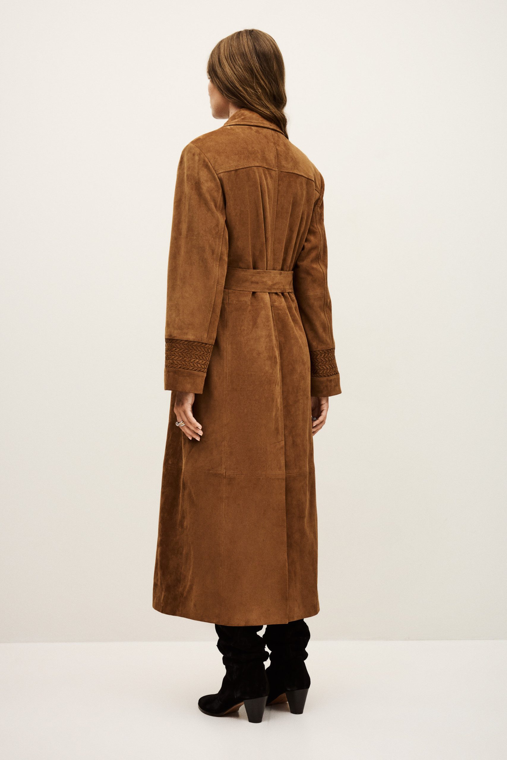 – Super long for a chic, rock ‘n’ roll style look- Suede material- Large rear slit- Lapel- Double-breasted- Embroidered cuffsThis product was made from leather from a tannery certified according to the Leather Working Group protocol.
