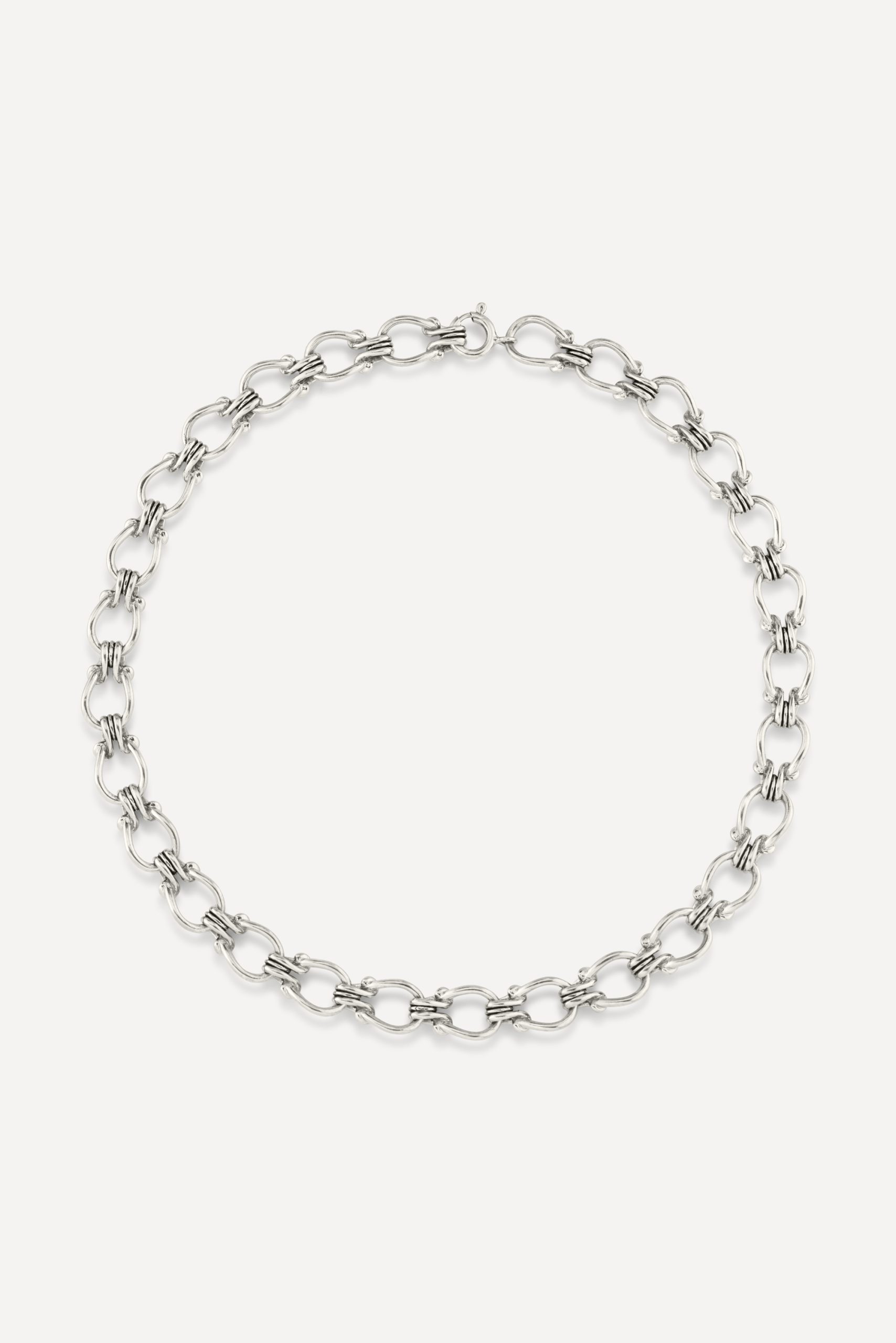 ba&sh Jewelry is an eco-friendly collection made with ample amounts of bohemian style and rock ‘n’ roll flair! Jewelry should be carefully handled and cleaned to preserve its beauty. To prevent its metal from tarnishing, avoid the use of chemical products and keep it away from damp areas. To be safe, wear your jewelry as much as possible! You’re going to love the sleek and modern feel of our THUNDER necklace. Crafted from recycled sterling silver, it is adorned with pretty, evenly spaced links that highlight its round and delicate lines. This necklace is designed with a clasp in back for quick and easy donning. Pair it with your favorite round, plunging, and V-neckline tops, jackets, and dresses.- Length: 42.5 cm (16.7 in.)- Recycled sterling silver necklace- Round clasp Get in the habit of removing your gold-plated jewelry before showering. This will help it last longer! With gold-plated pieces in particular, the thin layer of gold can become discolored or flake if exposed to water, soap, or other products.