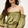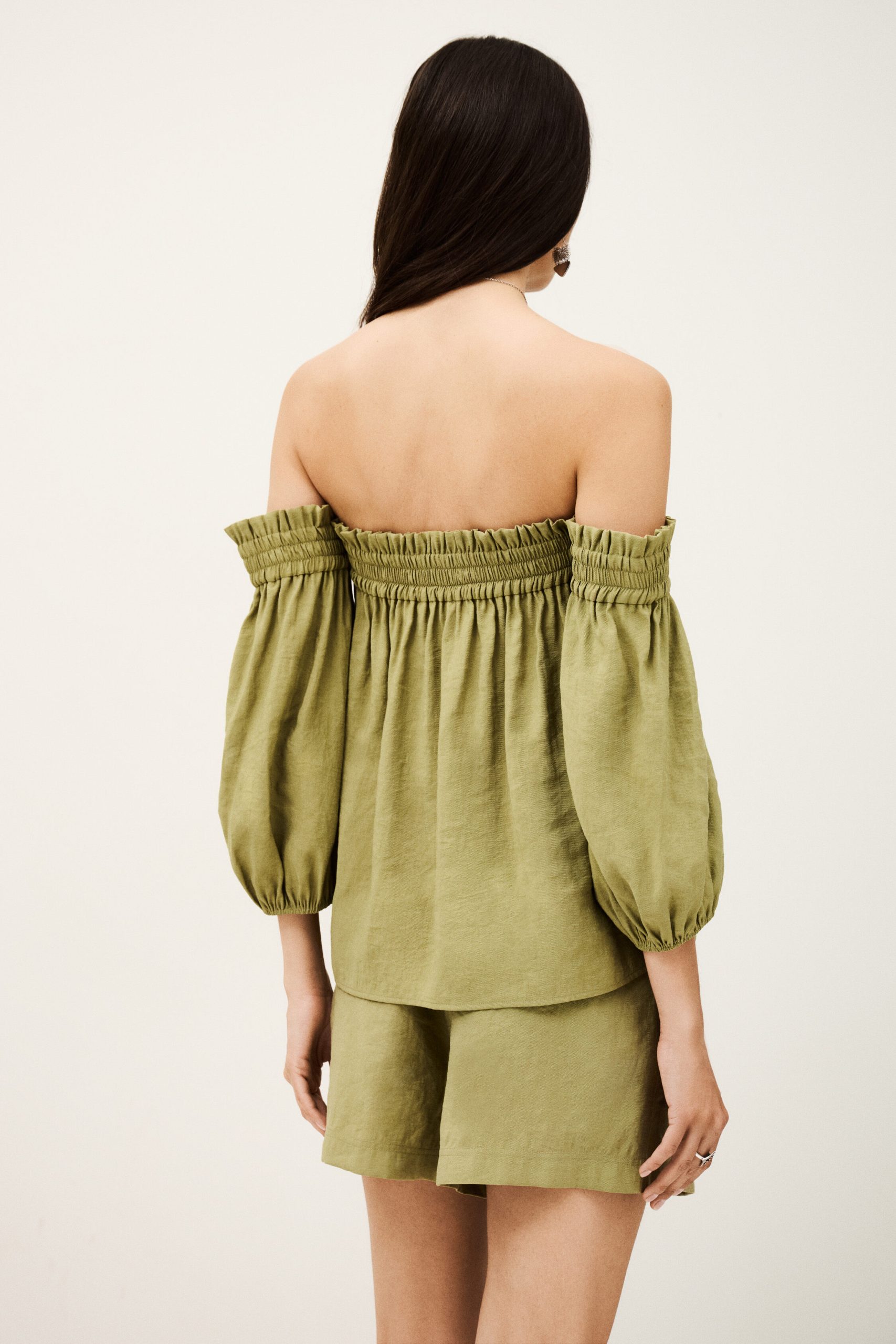 – Removable sleeves- Button for attaching and detaching the sleeves- Off-the-shoulder style- Elasticated top section with frill- Loose-fitting base- Elasticated cuffsThis model contains recycled synthetic fibers.