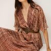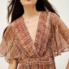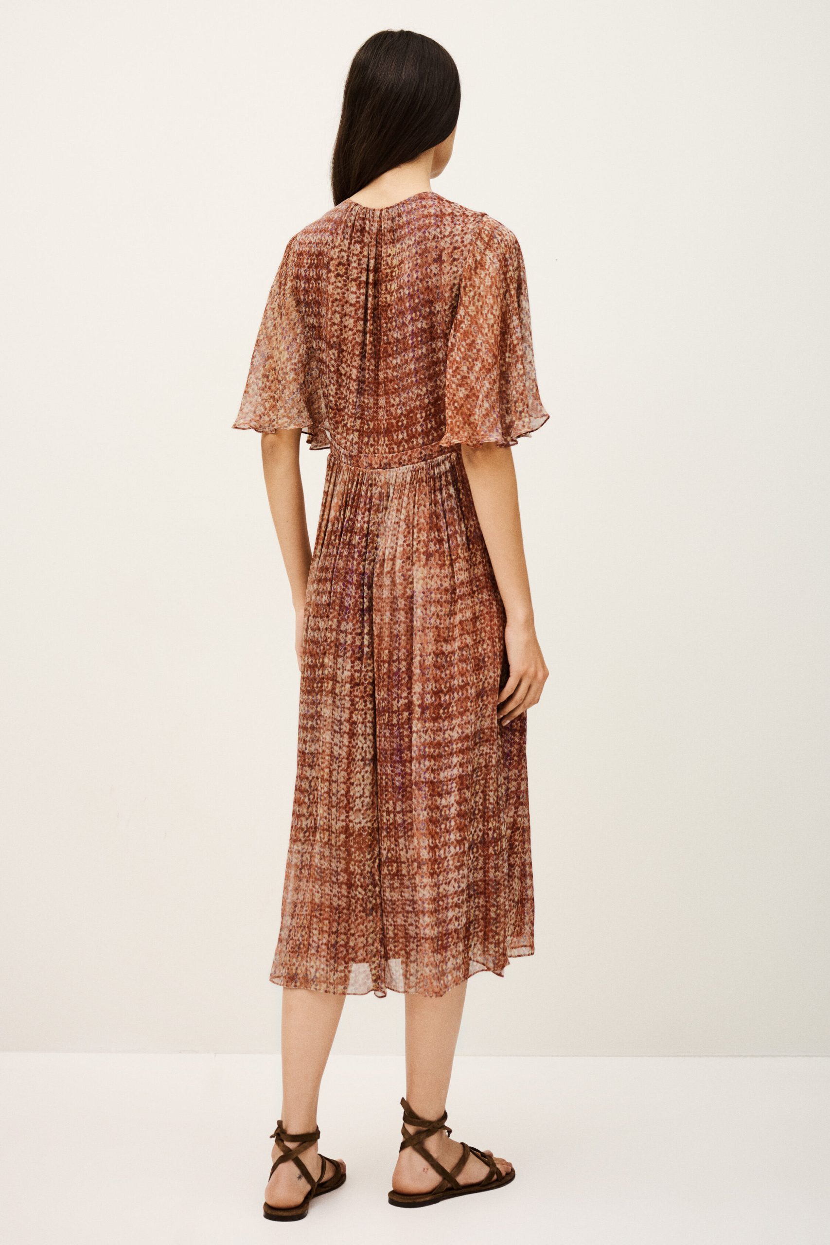 – See-through look with lining- Low-cut wrap-over neckline- Elbow-length butterfly sleeves- Belted waist- Gathered skirtThe viscose in this model is made from wood pulp from sustainably managed forests.